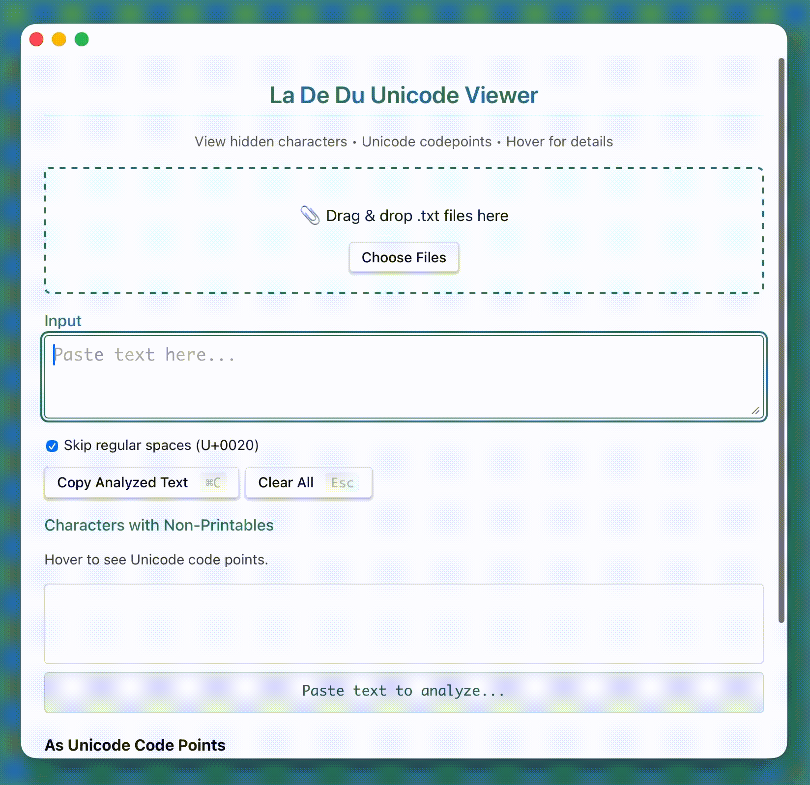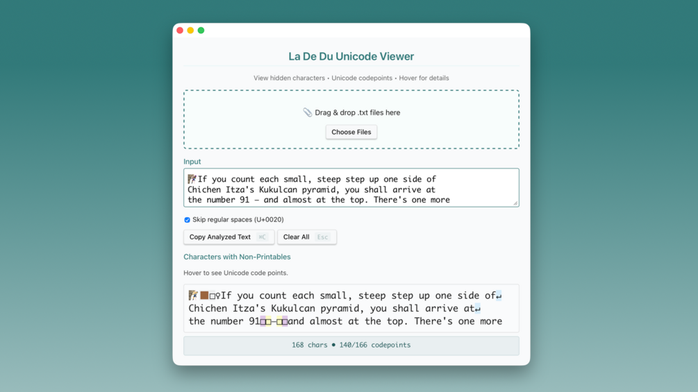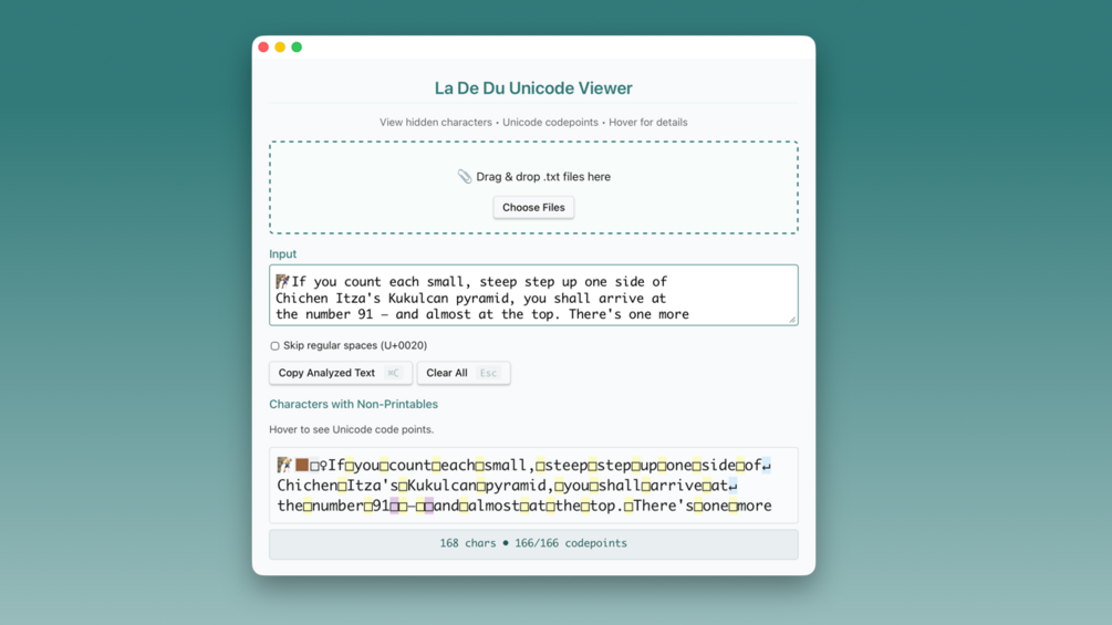 La De Du Unicode Viewer detects EVERYTHING: